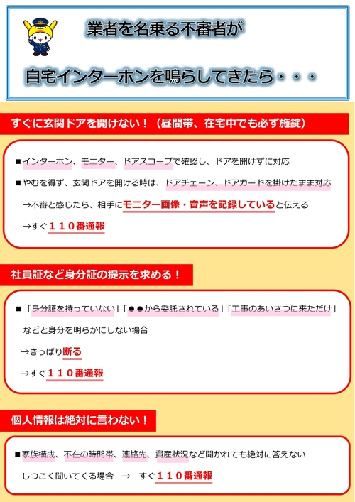 首都圏において、強盗事件が連続発生しています。強盗犯人が業者を装い訪問し、家に入って現金などを奪う事案も発生しています。