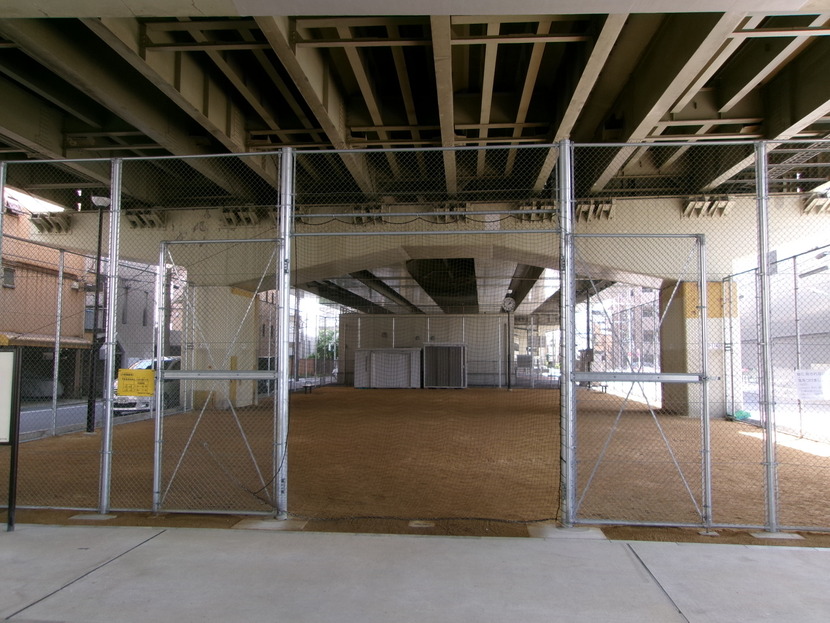 注意事項:ボールを高く蹴り上げたりしないでください。高架橋の桁下に挟まり取れなくなります。また、バットやラケットなどの使用は禁止しています。